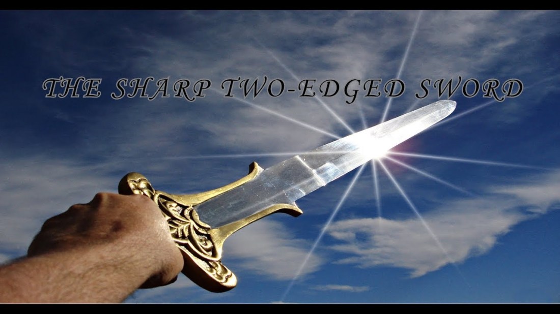 I had a dream Tuesday night. I was walking on a cobblestone road, on campus, at dusk. I looked toward the setting sun, then heard three voices singing behind me. I turned to look and it was three college women, riding bikes while harmonizing their song. They were singing, “My Savior's Sword” One started, the … Continue reading Sword